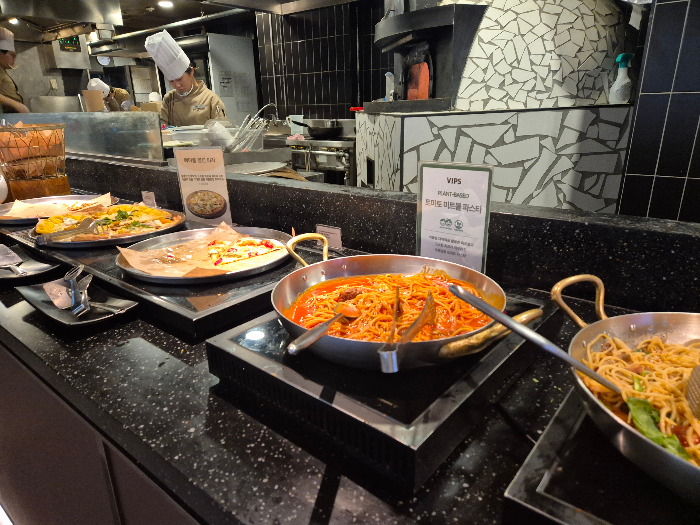 빕스의 진정한 매력은 바로 샐러드바에 있어요. 신선한 채소와 해산물은 물론, 핫푸드, 파스타, 피자, 디저트까지 없는 게 없습니다. 특히 제철에 따라 바뀌는 다양한 메뉴는 올 때마다 새로운 즐거움을 선사해요. 샐러드바만으로도 충분히 배부르고 만족스러운 식사를 할 수 있답니다.