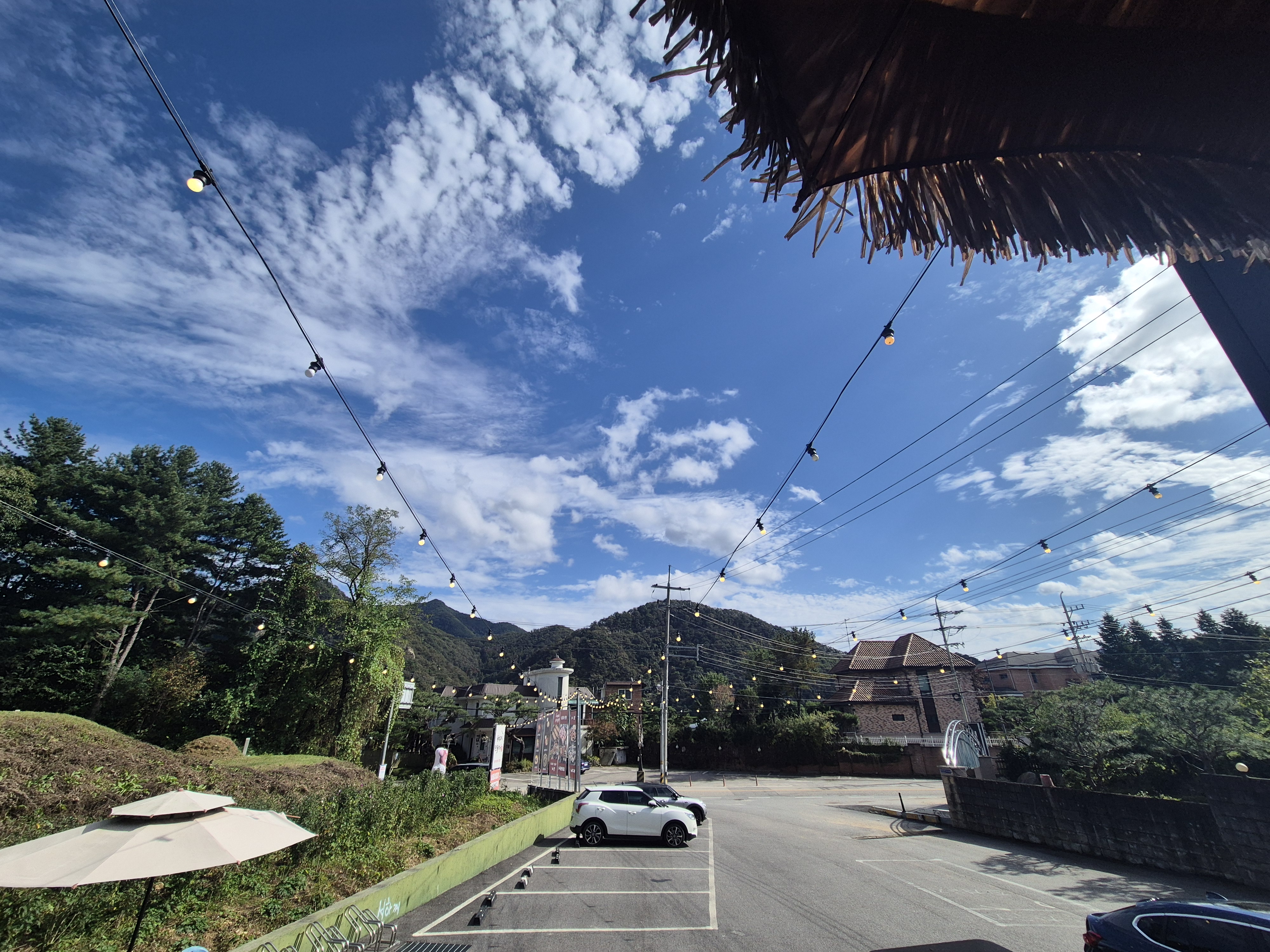 이날 날씨 미쳤어요. 하늘 너무 예쁘고 저 멀리 산까지 푸릇푸릇합니다.